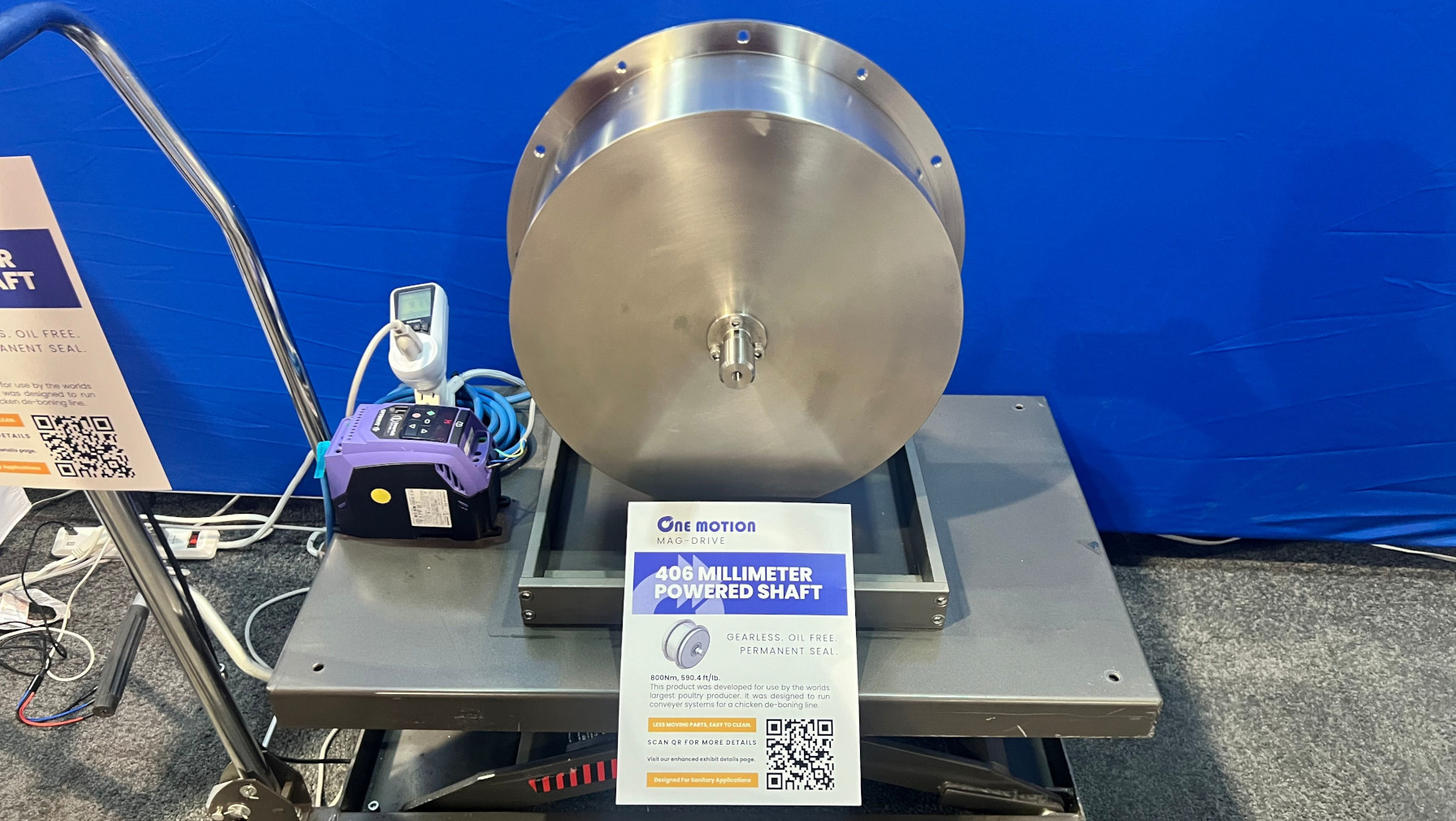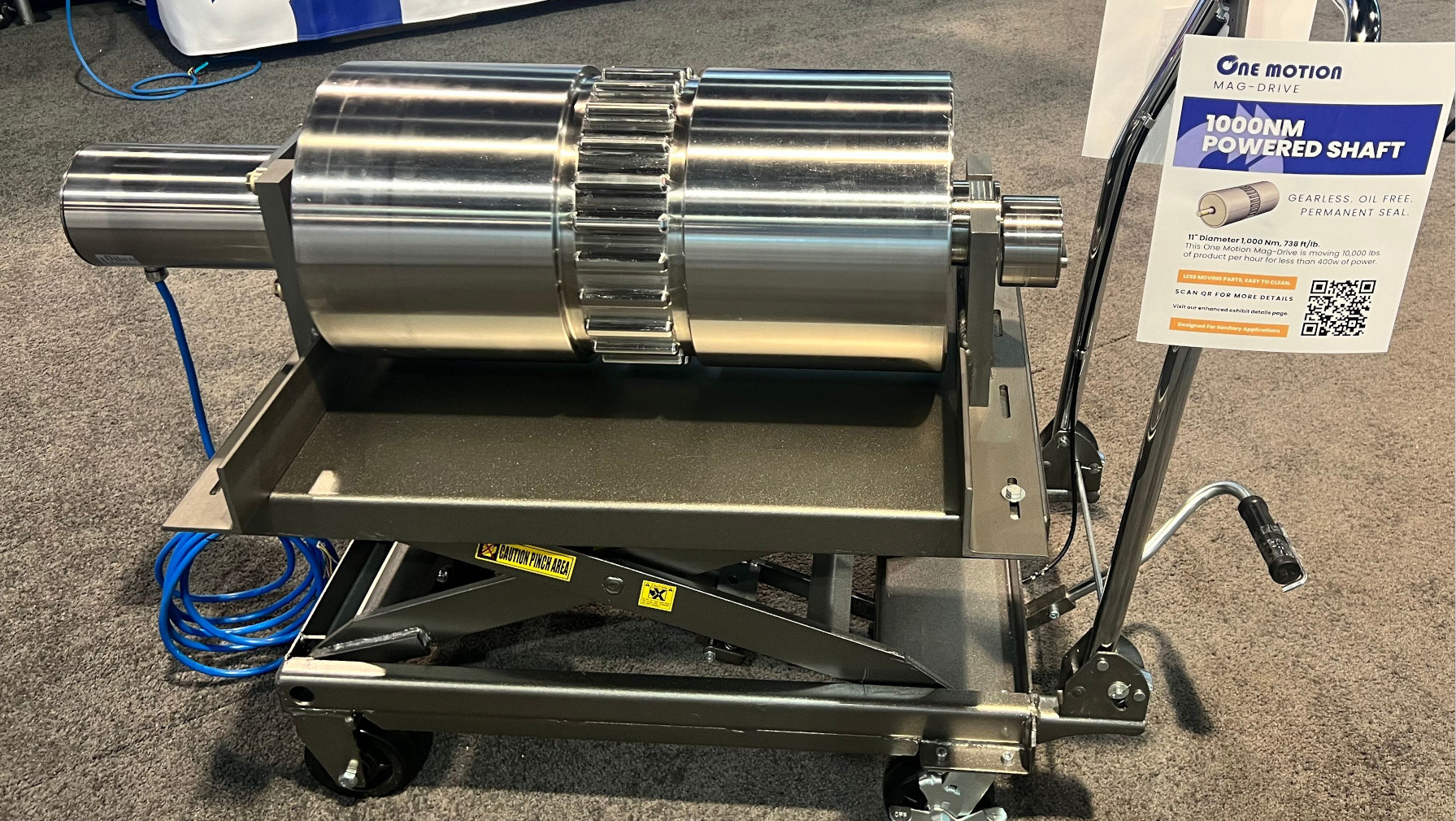 Our 11" Diameter 1,000 Nm, 738 ft/lb. This One Motion Mag-Drive is moving 10,000 lbs. of product per hour for less than 400 watts of power.